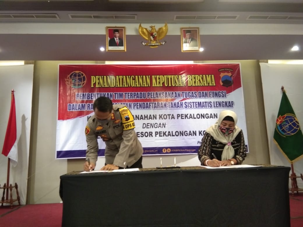 KOTA PEKALONGAN – Indonesiaparlemen.com | Bertempat di Hotel Pesona Jl. Dr. Cipto Kel. Kauman, Kec. Pekalongan Timur, Kota Pekalongan telah berlangsung kegiatan Penandatanganan Keputusan Bersama Kapolres Pekalongan Kota Dengan Kantor Pertanahan Kota Pekalongan tahun 2020, Kamis (16/7/20).