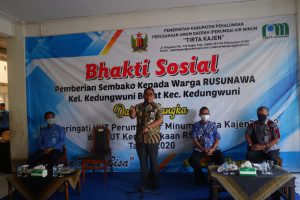 KAJEN, INDONESIAPARLEMEN.COM – Dalam rangka memperingati HUT Perusahaan Umum Daerah (Perumda) Air Minum Tirta Kajen ke-2 dan HUT Kemerdekaan RI ke-75 , Perumda Air Minum Tirta Kajen mengadakan kegiatan bakti sosial pemberian sembako kepada warga Rusunawa Kelurahan Kedungwuni Barat Kecamatan Kedungwuni, Rabu (12/08/20) pagi di kompleks Rusunawa Kedungwuni Barat.