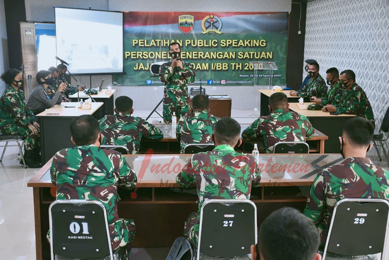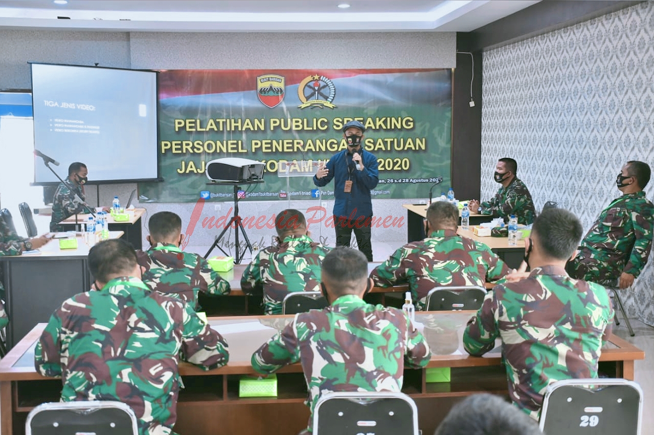 MEDAN, INDONESIAPARLEMEN.COM – Panglima Kodam I/Bukit Barisan, Mayjen TNI Irwansyah, M.A., M.Sc. memberikan apresiasi dan mendukung penuh pelaksanaan Pelatihan Public Speaking Personel Penerangan Satuan Jajaran Kodam I/BB yang digelar Pendam I/BB di Media Centre Pendam I/BB, Jln. Gatot Subroto Km. 7,5 Medan, Rabu (26/8/20).