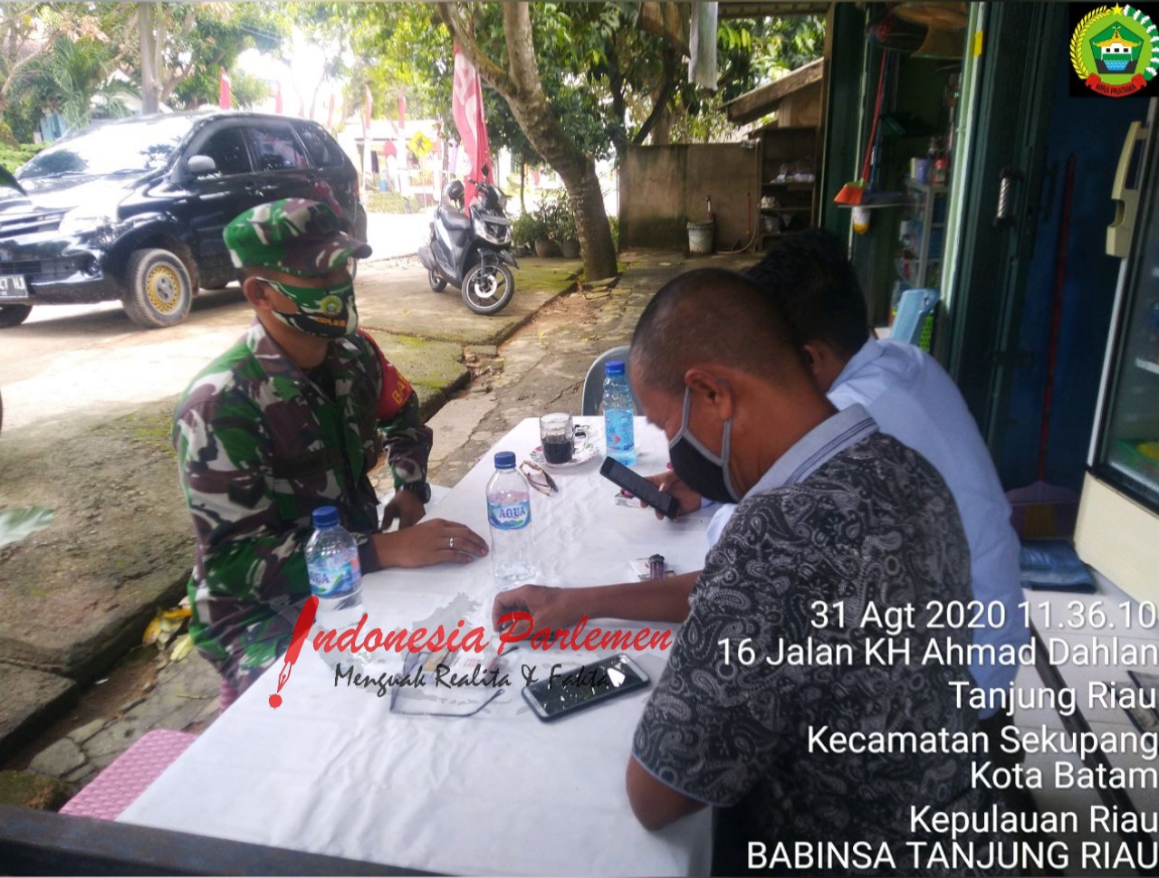 BATAM, INDONESIAPARLEMEN.COM – Babinsa 03 Koramil 02/BB, Kodim 0316/Batam, Sertu Adang Sutiawan melaksanakan kegiatan silaturahmi dengan Panitia Pemilihan Kecamatan (PPK) Sekupang terkait agenda Pleno Daftar Pemilih Sementara (DPS) Kelurahan Tanjung Riau, Kecamatan Sekupang, Kota Batam, Senin (31/8/20).