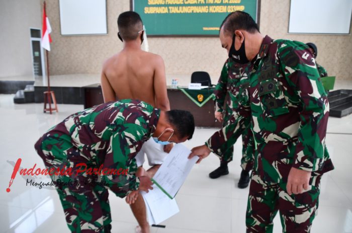 TANJUNGPINANG, INDONESIAPARLEMEN.COM – Danrem 033/Wira Pratama Brigjen TNI Harnoto, S.Sos. memimpin langsung sidang parade calon Bintara PK Tahun 2020, Sub Panda Tanjungpinang yang diikiti oleh 40 Calon Bintara PK, bertempat di GSG Makorem 033/WP, Jln. Senggarang KM 14 Kota Tanjungpinang, Jumat (11/9/20).