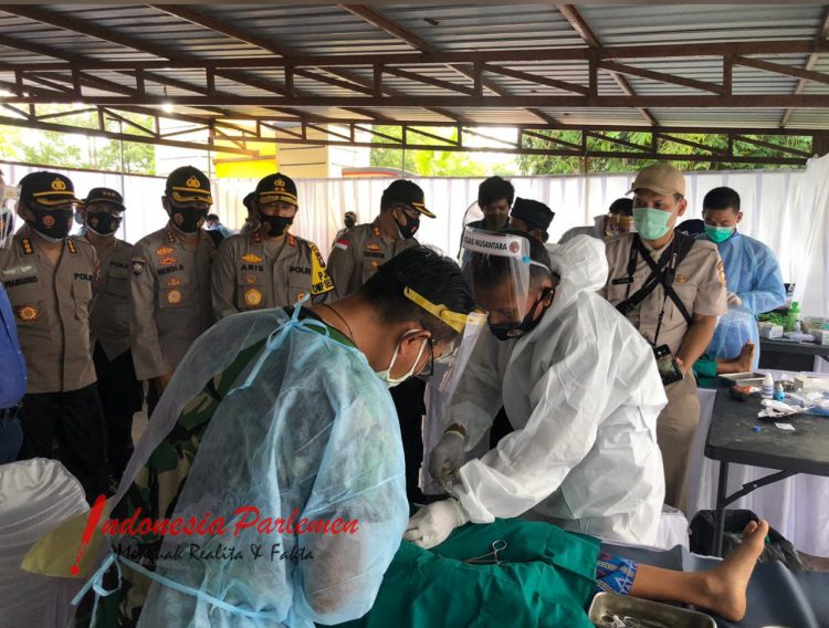 Selain kegiatan pembagian sembako juga di laksanakan sunat masal dan rapit test drive true serta pembagian masker gratis oleh dokkes Polresta Barelang.