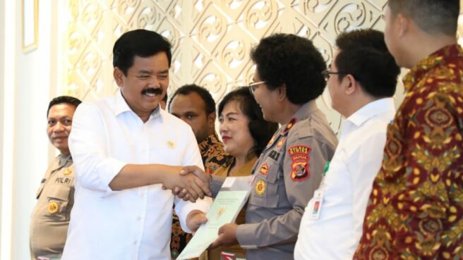 Pada Selasa (17/10/2023), bertempat di Aula Kantor Gubernur Papua, Jayapura, Menteri ATR/Kepala BPN, Hadi Tjahjanto menyerahkan sertifikat aset BMN dan BMD di Provinsi Papua.