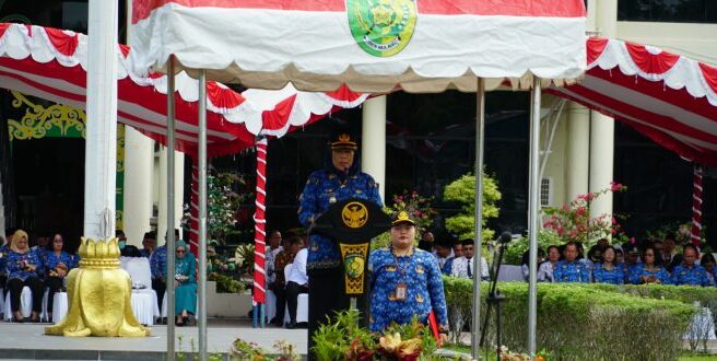PALANGKARAYA – Untuk memperingati Hari Ulang Tahun (HUT) ke-52 Korps Pegawai Republik Indonesia (KORPRI), bersamaan dengan memperingati HUT ke-78 Persatuan Guru Republik Indonesia dan juga Hari Guru Nasional digelar upacara di Halaman kantor walikota Palangkaraya , Senin (27/11/2023).