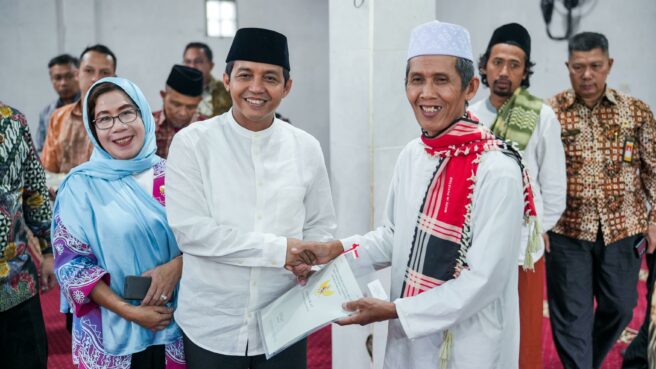 “Saya mengucapkan Alhamdulillah, bersyukur atas kesempatan ini. Saya hadir untuk mewakili Menteri ATR/ Kepala BPN bersama dengan Kepala Kantor Wilayah (Kanwil) BPN Sumatra Selatan, Ibu Asnawati. Hari ini kami menyerahkan lima sertifikat wakaf untuk dua masjid dan tiga yayasan,” ungkap Raja Juli Antoni dengan antusias.