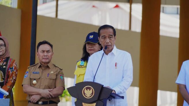 PALANGKARAYA – Presiden Joko Widodo (Jokowi) didampingi Gubernur Kalteng Sugianto Sabran resmikan pembangunan sarana dan prasarana pendidikan di Provinsi Kalimantan Tengah (Kalteng), di gedung pascasarjana IAIN Kamis (27/6/2024).