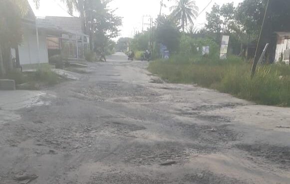 Dari pantauan di lokasi, nampak jalanan dipenuhi lubang besar.