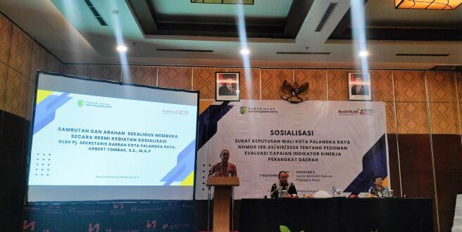 Hal itu sampaikan Penjabat Sekretaris Daerah Kota Palangka Raya, Arbert Tombak pada kegiatan Sosialisasi Evaluasi Capaian Indikator kinerja Perangkat Daerah di lingkungan Pemerintah Kota (Pemkot) Palangka Raya, di Swissbell Hotel Danum, Palangka Raya, Kalimantan Tengah, Kamis (7/11/2024).