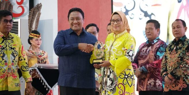 Dalam kesempatan tersebut Wagub Kalteng, Edy Pratowo menyerahkan langsung piagam penghargaan kepada Pj Wali Kota Palangka Raya, Hera Nugrahayu.