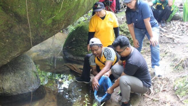 PALANGKARAYA – Bidang Bimas Hindu Kanwil Kementerian Agama Provinsi Kalimantan Tengah bersama Pimpinan Lembaga Hindu lepasliarkan satwa di Pura Sali Paseban Batu Tangkiling, Palangka Raya, Sabtu (12/7/2025). Satwa yang dilepasliarkan meliputi 50 ekor burung ,100 bibit ikan lele, dan 50 bibit ikan mas. Selain itu juga dilakukan penanaman 120 bibit pohon matoa.