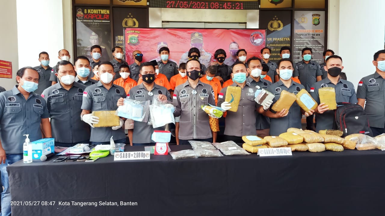Transaksi 29,46 Kg Ganja dan 2,69 Kg Sabu Jaringan Sumatera Digagalkan Polres Tangsel